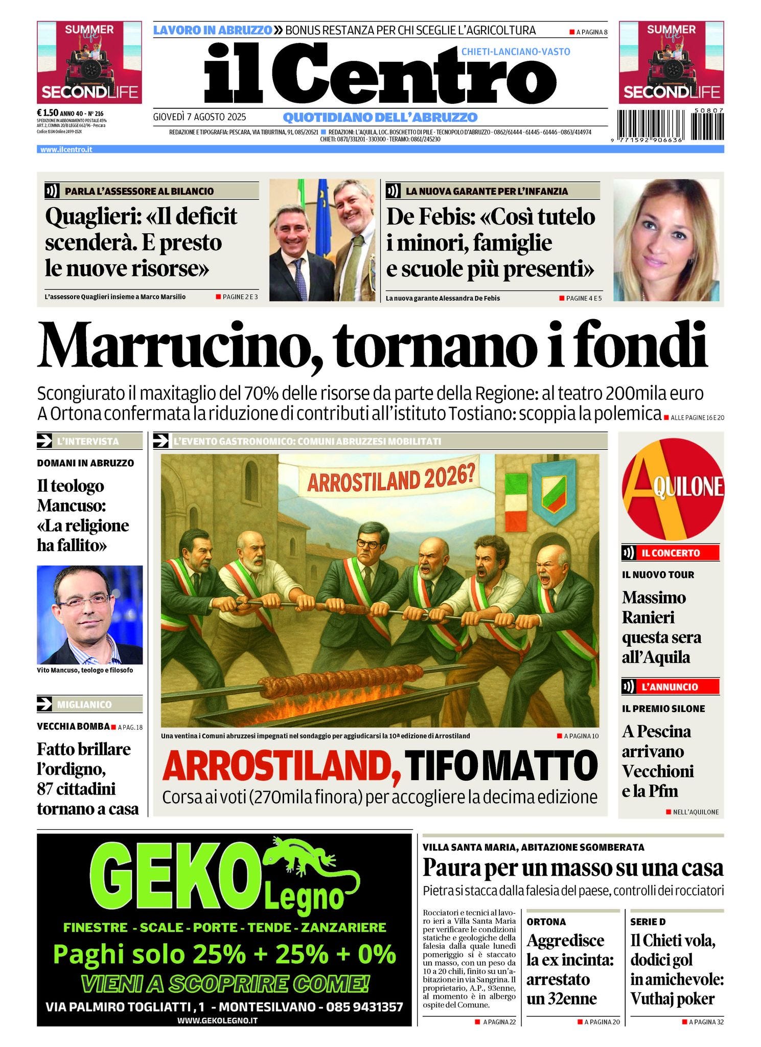 Tagli al Tostiano, scontro in Regione: il Pd attacca la “filiera al contrario”, Di Nardo rassicura. Bocciato un emendamento del Patto per l’Abruzzo che chiedeva di ripristinare oltre 11mila euro di fondi tagliati all’Istituto Nazionale Tostiano: l’opposizione attacca il governo regionale e il sindaco di Ortona, accusandoli di penalizzare la cultura per ripianare il buco della sanità. Il Pd ortonese parla di una “filiera al contrario” e “bugiarda”, mentre l’ex vicesindaca Canosa ribadisce il suo ironico mantra: “La filiera non fila”. Di Nardo, però, resta fiducioso e ricorda l’incontro con Fratelli d’Italia del 25 luglio: “Il ripristino dei fondi è stato garantito nella prossima variazione di bilancio e non me l’aspettavo in quella seduta del Consiglio regionale”, ha dichiarato al Centro. Ma per il Pd ortonese e il M5s si tratta solo di “un assegno in bianco”, senza certezze concrete.
