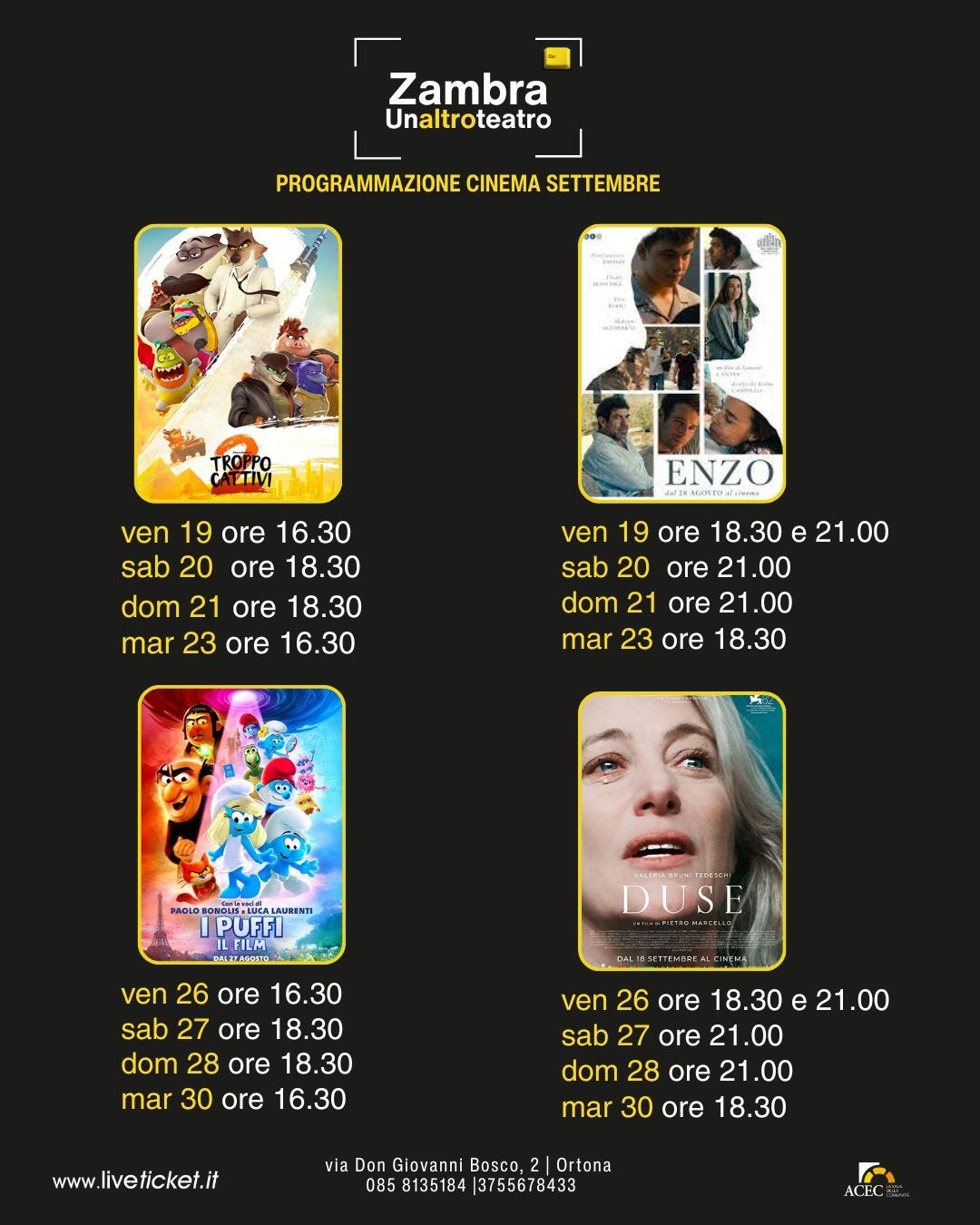 Continua la proiezione dei film al Cinema Zambra, ecco la programmazione di settembre: